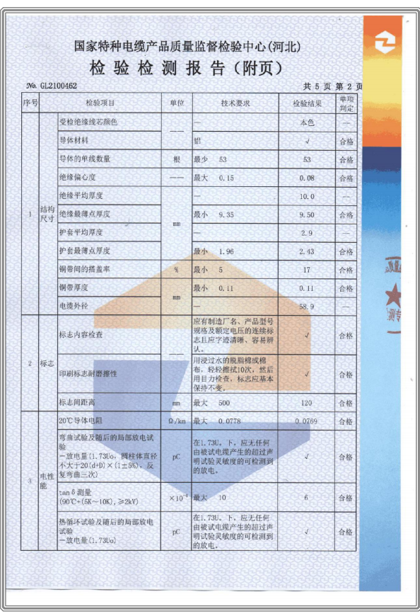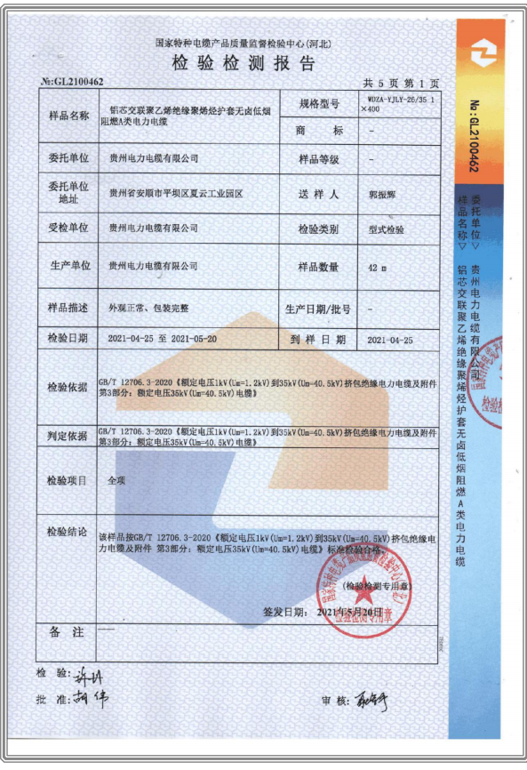 鋁芯交聯(lián)聚乙烯絕緣聚烯烴護(hù)套無(wú)鹵低煙阻燃A類電力電纜-檢驗(yàn)檢測(cè)報(bào)告